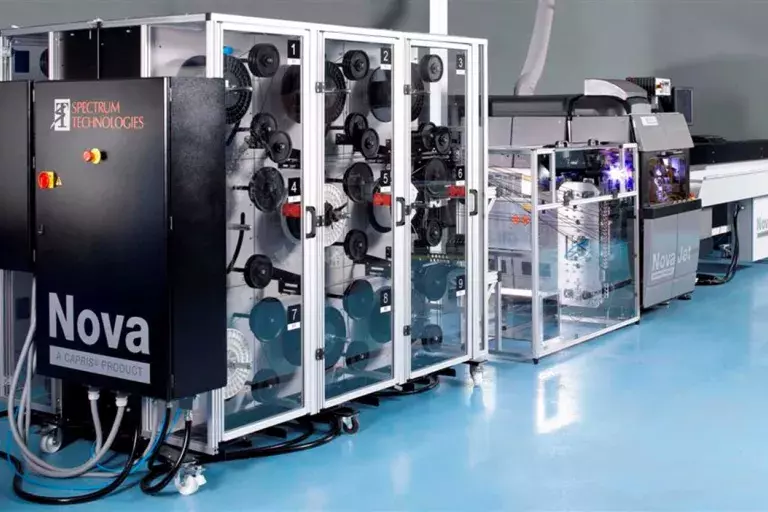 公司着手開發了一種基於噴墨技術的新型線束標印機——NovaJet。NovaJet提供白色墨水標記,並通過紫外線固化來增強持久性。首套自動化NovaJet系統已交付給西科斯基公司,以替代早期定製的噴墨線束標印機。