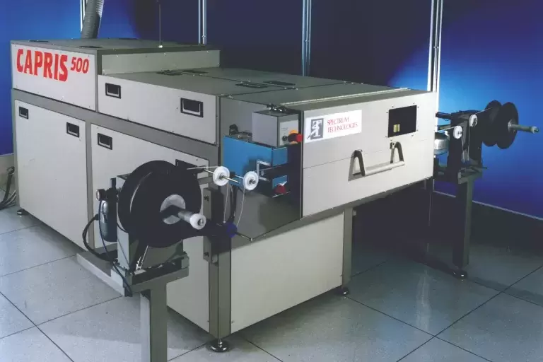 它訂購了一台C500。CAPRIS 555(C555)是一種定製的準分子激光打標系統;它是為德國漢堡的空中客車公司開發的,是歐洲的首個客戶,緊隨其後的是Speyer空中客車公司。C555是首款基於旋轉字符盤的線纜打標設備,每個激光脈衝標記一個字符。